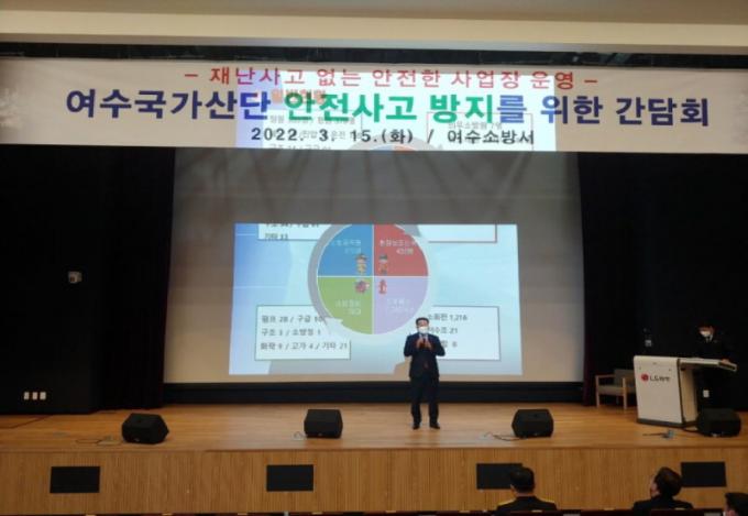 [È£³²´º½º¶óÀÎ = ¼ÀºÈ« ±âÀÚ] Àü³²µµÀÇȸ ¾ÈÀü°Ç¼³¼Ò¹æÀ§¿øÈ¸ ÃÖ¹«°æ À§¿øÀå(¿©¼ö4, ´õ¹ÎÁÖ)Àº 15ÀÏ ¿©¼ö»ê´Ü ³» LGÈÇÐ ¿ë¼º°øÀå ´ë°´ç¿¡¼ ¡®¿©¼ö±¹°¡»ê´Ü ¾ÈÀü»ç°í ¹æÁö¸¦ À§ÇÑ °£´ãȸ¡¯¸¦ °¡Á³´Ù.