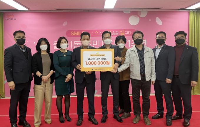 ¿ù°î1µ¿ ÁÖ¹ÎÀÚġȸ À§¿øµéÀº Áö³ 15ÀÏ ÁÖ¹ÎÀÚġȸ Ãâ¹ü 1Áֳ⠱â³äÇà»ç¸¦ °³ÃÖÇÏ´Â ´ë½Å Çà»ç ºñ¿ëÀ» »êºÒ ÇÇÇØ·Î ¾î·Á¿òÀ» °Þ°í ÀÖ´Â ÀÌÀç¹ÎÀ» µ½±â À§ÇØ ±âºÎÇϱâ·Î Çß´Ù.