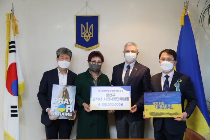 [È£³²´º½º¶óÀÎ = ¼ÀºÈ« ±âÀÚ] ±¤Áֽà ±¤»ê±¸ Áö¿ª°øµ¿Ã¼°¡ ¿ìÅ©¶óÀ̳ª Æòȸ¦ ±â¿øÇÏ¸ç ¸ðÀº ¼º±Ý 1¾ï ¿øÀÌ Áö³ 16ÀÏ ¿ìÅ©¶óÀ̳ª ´ë»ç°ü¿¡ Àü´ÞµÆ´Ù.
