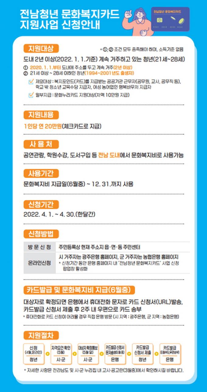 Áö¿ø ´ë»óÀº 2020³â 1¿ù 1ÀϺÎÅÍ °è¼ÓÇÏ¿© Àü³²µµ¿¡ ÁÖ¼Ò¸¦ µÎ°í, 2³â ÀÌ»ó °ÅÁÖÇÑ 21¼¼~28¼¼(1994~2001³âµµ Ãâ»ýÀÚ) û³âÀÌ´Ù.
