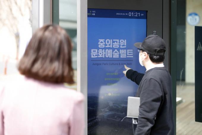 [È£³²´º½º¶óÀÎ = ¼ÀºÈ« ±âÀÚ] Á߿ܰø¿ø ¹®È¿¹¼úº§Æ®°¡ ½Ã¹Î°ú °ü¶÷°´ÀÌ ¸Ó¹«´Â °ü±¤¸í¼Ò·Î Å»¹Ù²ÞÇϰí ÀÖ´Ù. ¹®È¿¹¼ú±â°üÀÇ ¼Ò½ÄÀ» ÇÑ ¹ø¿¡ ¾Ë ¼ö ÀÖ´Â ½º¸¶Æ® ¾È³»Ã¼°è°¡ ±¸ÃàµÆ±â ¶§¹®ÀÌ´Ù.