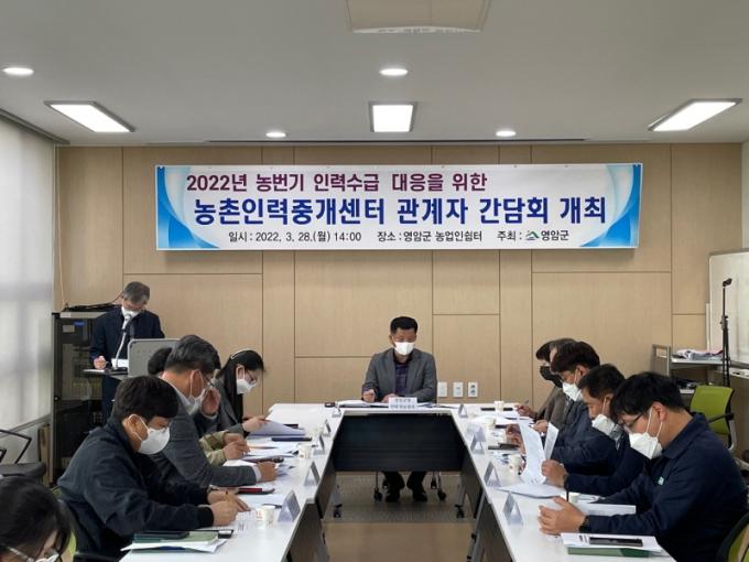 [È£³²´º½º¶óÀÎ = ¼ÀºÈ« ±âÀÚ] ¿µ¾Ï±ºÀº 28ÀÏ ¿µ¾Ï±º ³ó¾÷Àν°ÅÍ¿¡¼ 4°³ÀÇ ³óÇùº° ÀηÂÁß°³¼¾ÅÍ¿Í °ü°èºÎ¼°¡ ¸ð¿© ³ó¹ø±â ³óÃÌÀη ¼ö±Þ ´ëÀÀ °£´ãȸ¸¦ ¿°í ³óÃÌÀη ºÎÁ· ÇØ¼Ò¸¦ À§ÇÑ ¹æ¾ÈÀ» ¸ð»öÇß´Ù.
